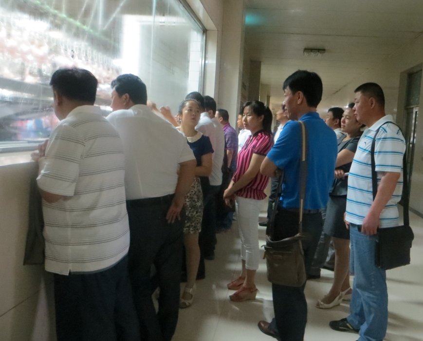2013年7月5日上午9:38,吉林省各高校后勤領導準時到達吉林德大有限公司肉食加工廠,對屠宰廠分割車間、深加工車間、調(diào)理品車間做進一步的參觀工作。
