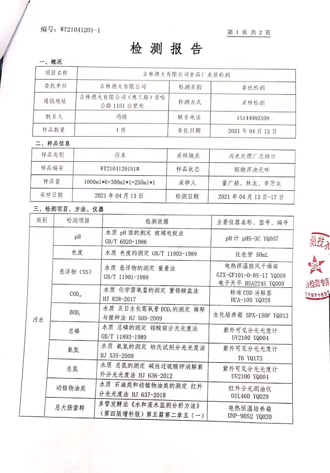 2021.4廢水外委檢測(cè)信息公開(kāi)